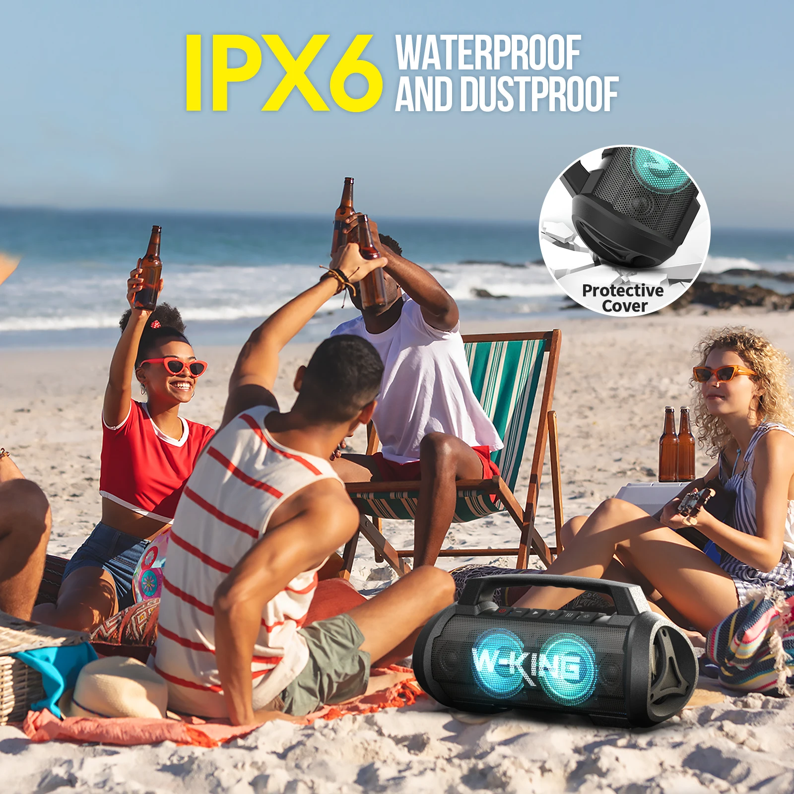 【DSP & BASS UP】 D10 wireless bluetooth speaker features an advanced DSP chip that is adept to eradicates distortion and forges a distortion-free and Hi-fi speakers bluetooth wireless loud. The wireless speaker equips the dual large passive radiators which greatly augment resonance that add a richer layer to the bass. Go with the W-KING D10 portable speaker, you will experience celestial music and layered deep bass. Whether it’s a family barbeque, or a camping trip – day or night with the D10.